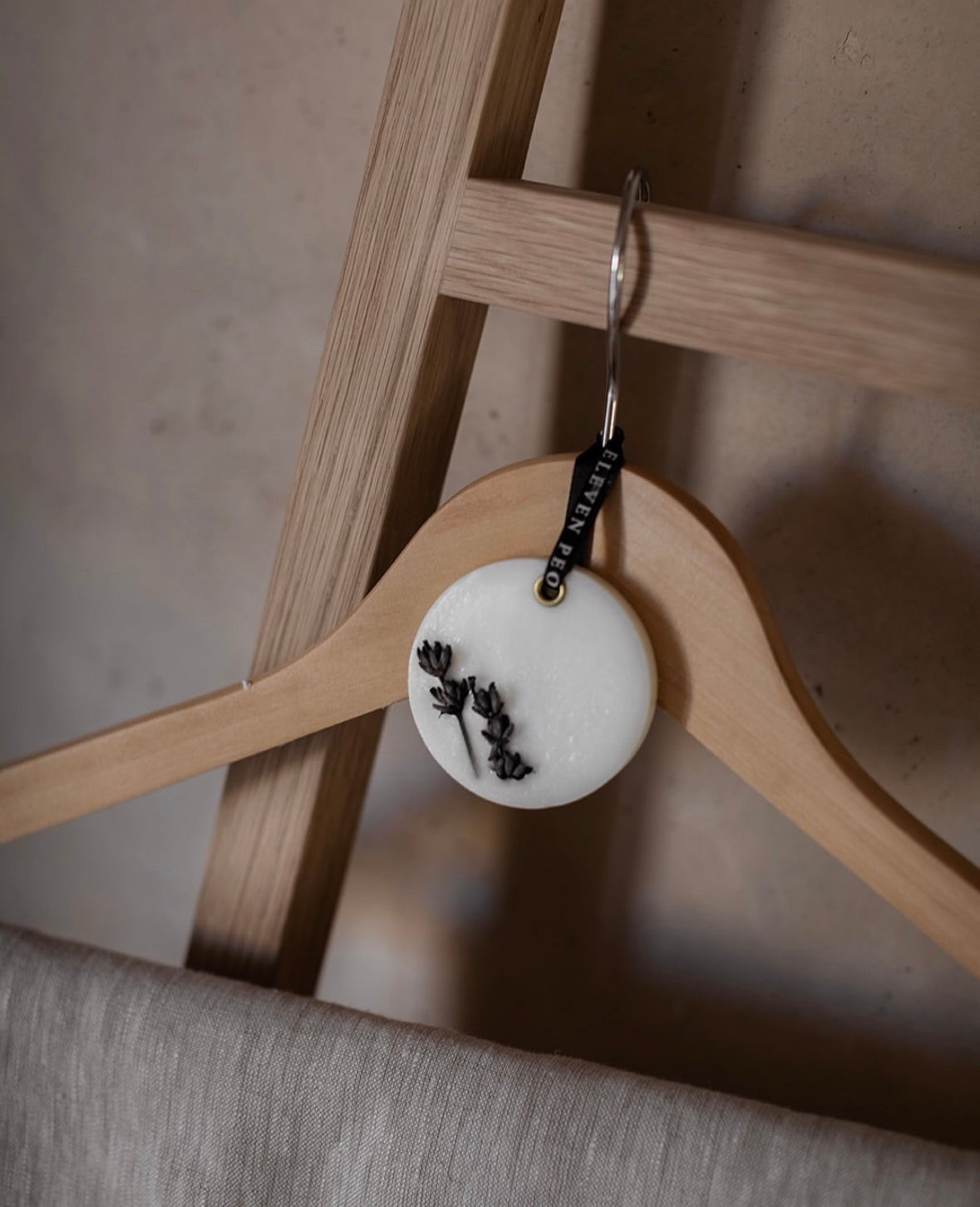 Fester Sojawachs-Lufterfrischer oder Wachsriegel, handgefertigt und mit botanischen Elementen verziert.