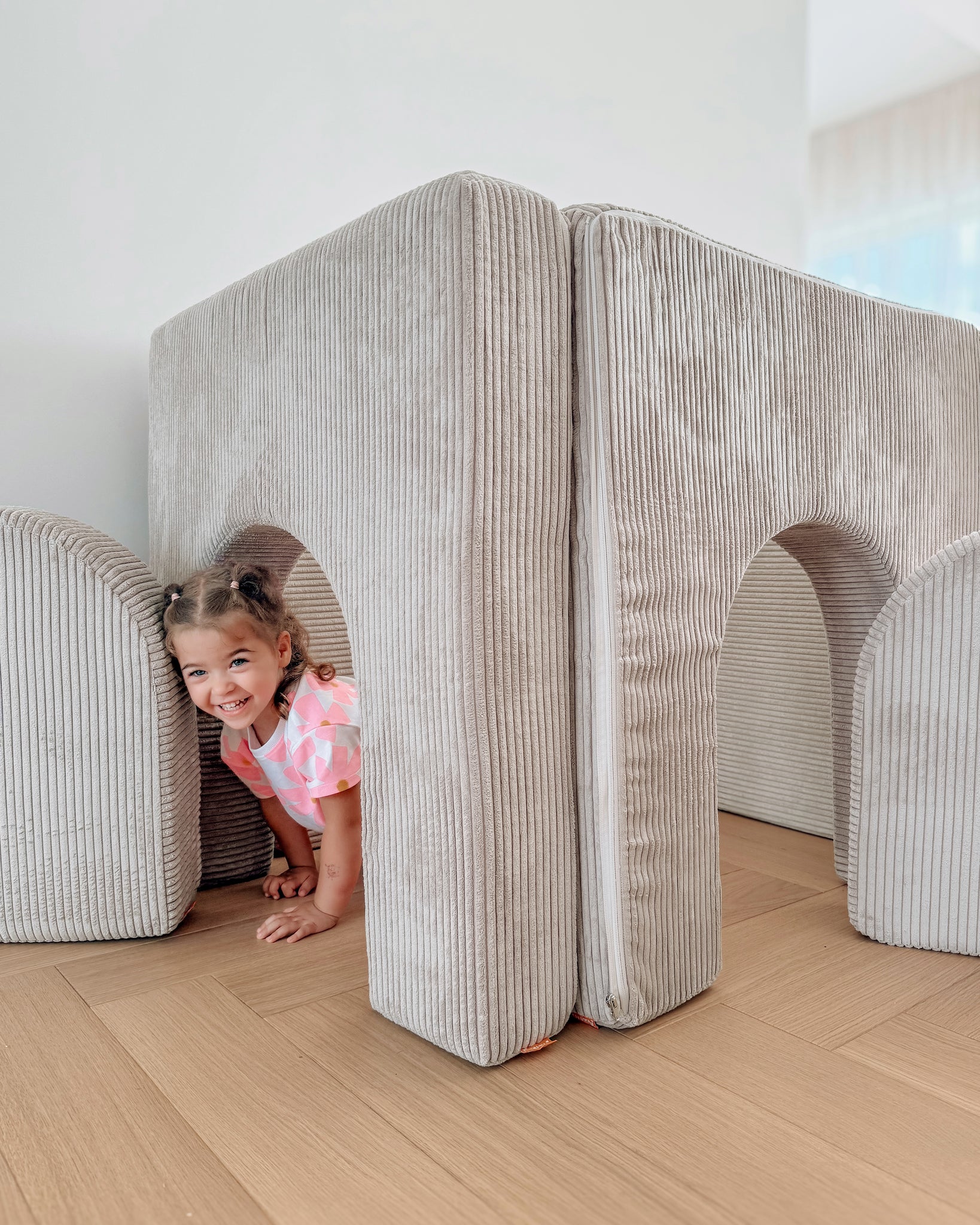Was wäre ein Schloss ohne Pforte? Mit den Arches wird dein Spielsofa zur Bühne für Fantasie: Tunnel. Höhlen. Rückzugsorte. Alles, was Kinder lieben, mitten im Wohnzimmer.