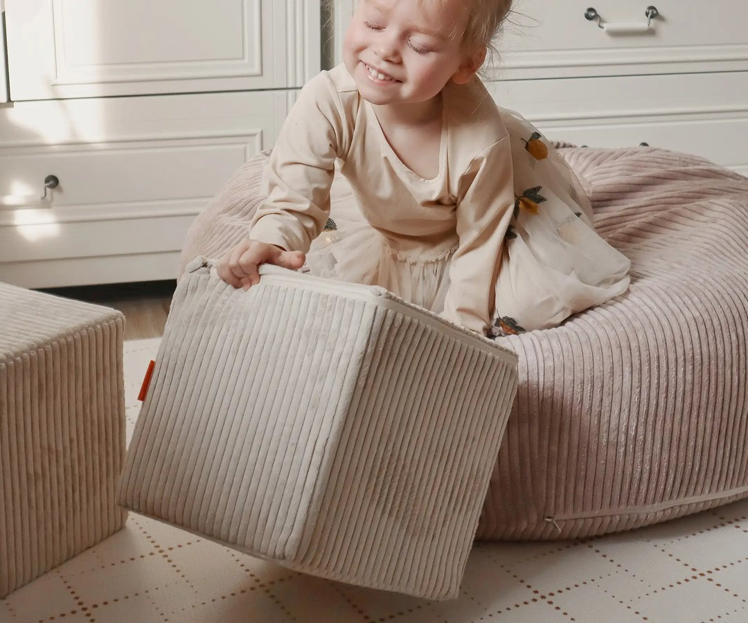 Unsere Cubes mit trendigem Cord-Bezug sind besonders weich, robust, strapazierfähig und in vielen sanften Farben erhältlich – perfekt für das Kinderzimmer. Sie sind nicht nur bequem und laden auch zum Kuscheln ein, sondern setzen auch farblich stilvolle Akzente.