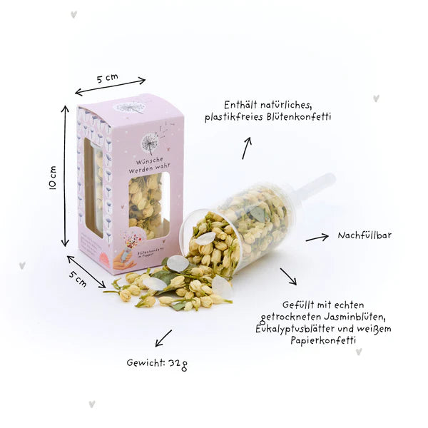 🌟 Wünsche werden wahr - manchmal braucht es nur ein bisschen Konfetti: Gute Wünsche kann man immer gebrauchen - ob für sich selbst oder für andere. Dieser Blütenkonfetti Popper erinnert auf zauberhafte Weise daran, nie aufzuhören zu träumen. Perfekt, um jemandem Mut, Hoffnung oder einfach ein bisschen Magie zu schenken.