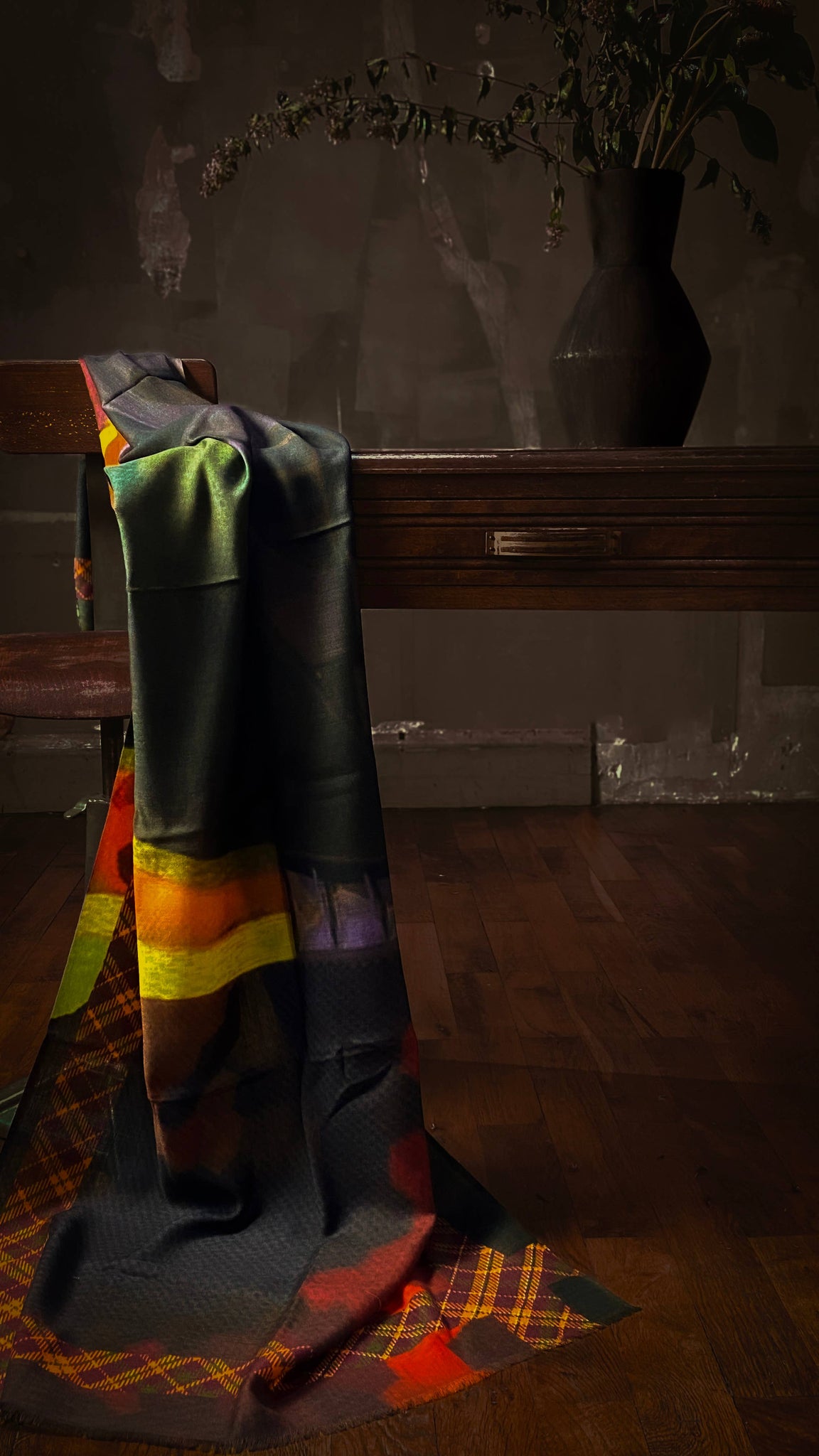 Jeder Schal ist mit einem exklusiven Design bedruckt, das vom Studio FST entworfen wurde und grafische Kunst mit textilem Raffinement verbindet. Er wird in einer Geschenkverpackung präsentiert, die dem Universum der Marke treu bleibt.