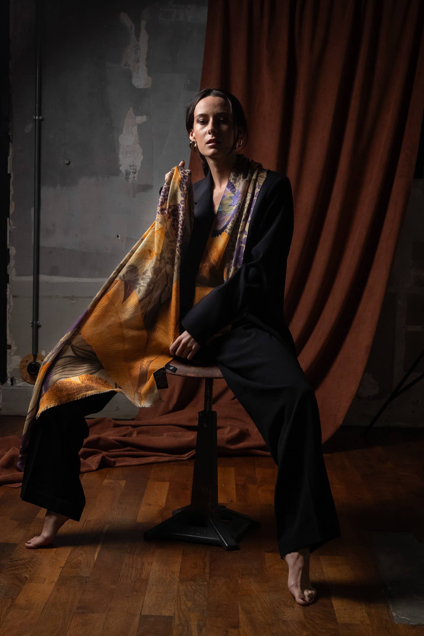 Jeder Schal ist mit einem exklusiven Design bedruckt, das vom Studio FST entworfen wurde und grafische Kunst mit textilem Raffinement verbindet. Er wird in einer Geschenkverpackung präsentiert, die dem Universum der Marke treu bleibt.